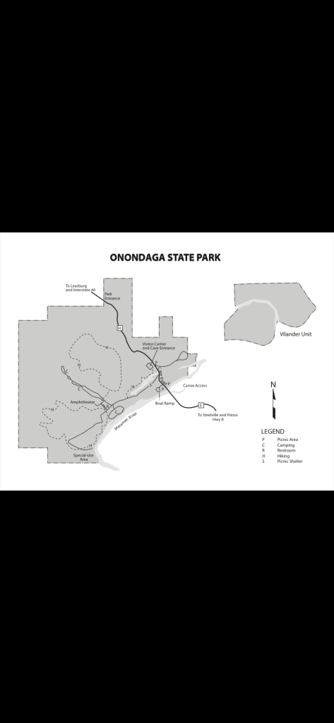 Located just a short drive from Highway 44 in Leasburg, Missouri, Onondaga Cave State Park is best known for its namesake, Onondaga Cave. However, there is so much more to this park than just the cave. In fact, there are two caves within the park with the second one being Cathedral Cave. In addition to the two caves, visitors can enjoy swimming, fishing, and floating on the Meramec River. For campers, there is a well-maintained campground perfect for all types of camping with roads suitable for biking/scootering/skating. BUT, in this park you will need to be Bear Aware as there is a bear that lives within the park!