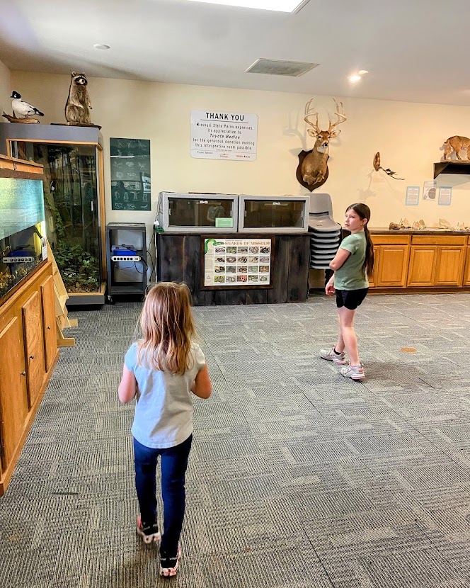 Located in Leasburg, Missouri, the campground at Onondaga Cave is a decent-sized campground with well-maintained sites and roads. The park staff and hosts do a fantastic job managing the property. In addition to electric, the sites also have water. The facilities were clean and only slightly dated. Again, the roads were in great condition and were perfect for scootering. We camped in site 39 so the kiddos were able to just scooter around the loop and we could see them the whole time. The other nice thing about the site was there was a lot of greenspace behind us. Our girls along with the kiddos camping around us were able to play endless hours of games. Now, if only everyone cared about the park as much as the staff… for this to be one of the most well-kept parks we have visited, it was shameful to see (yes, actually witness) so many pet owners not picking up after their dogs. Not only did we have to be careful where we walked because of dog poop, we had to be watch out for several unleashed dogs and the person that actually walked their dog right through our site with our dogs. Our dogs were on their leads but we had to physically hold them to prevent any interaction. Since this was such a great park otherwise, we hope that this is not the norm. Oh, and, if you forgot something there is a small store inside the Visitor Center.