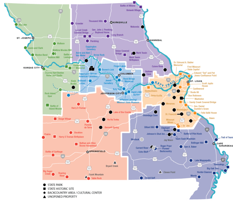 Missouri State Parks offers this great locator map on the website to help visitors locate parks/historic sites based on the regions of the state. We use this map to track the parks/historic sites that we have visited.